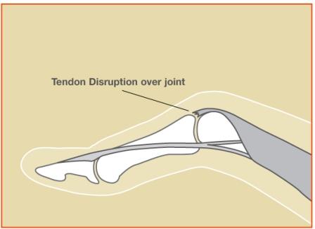 Cuts that split the tendon may need stitches, but tears caused by jamming injuries are usually treated with splints. Splints stop the healing ends of the tendons from pulling apart and should be worn at all times until the tendon is fully healed. Your doctor will apply the splint in the correct place and give you directions on how long to wear it. Sometimes a pin is placed through the bone across the joint as an internal splint in addition to the external splint.